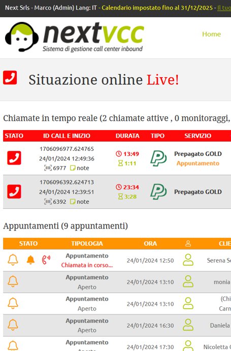Pannello chiamate Live in tempo reale